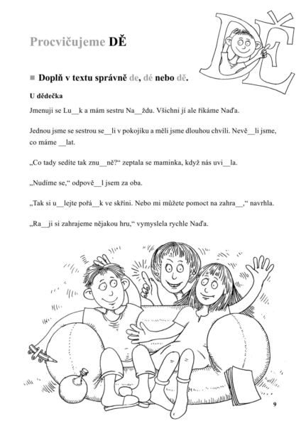 Čti, lušti, vybarvuj a j na pati, že psát pravopis správ není žádná oť. Objev s námi, že křížovky nejsou nudné lušniny. S osmisrkami se zasješ a navrch tě čeká kná dávka omalovánek. Nakonec zjistíš, že psaní slov se slabikami  ti jde jako nkavě zv.